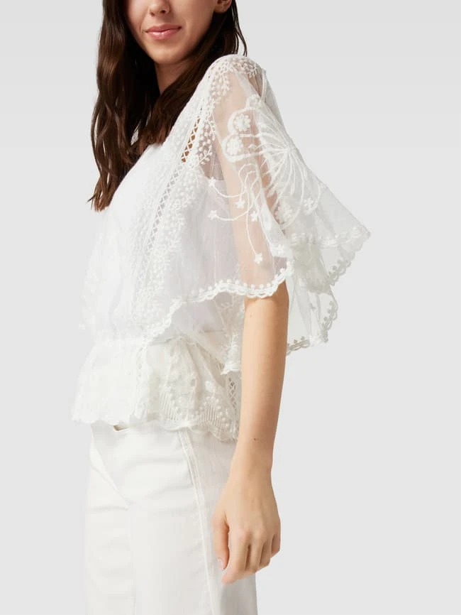 Apricot Spitzenbluse Mit Kimonoärmeln – Ecru