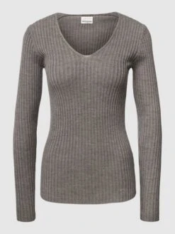 Ann-Kathrin Goetze X P&C Strickpullover In Ripp-Optik – Ann-Kathrin Götze X P&C – Mittelgrau Meliert